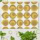 Mid-century modern inspired design featuring a seamless pattern of retro golden mustard circles on a white background. Simple, clean modern design. One design of a coordinating collection.