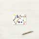 These notes have a mid-century modern design of black lines with circles of different colors and sizes on a field of white.