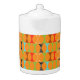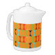 Knock, knock. Who's there? Mid Century Modern Orange Pattern Teapot! Hey, with a design this retro, you don't need a punch line. This perfectly mod pattern features a vibrant orange background and rows of an adorably kitschy shape in green, red, turquoise, black & white, and wood grain. The shape probably has a name, but, for the life of us, we don't know it! Whatever it is, it's a definite tribute to the atomic era of the 1950s and 1960s. Buy this product and name the shape yourself. What about, "Betty"? It sort of looks like a Betty to us. Orange you glad we are so funny when try to get all of the important catchphrases into our write-ups? Zazzle, jet-age, space age, sophisticated, whimsical, Strange Little Onion… We just thought we would throw in a few more catchphrases for good measure. Thanks for your purchase. Betty thanks you, too!