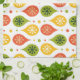 Mid Century Modern orange red rain drops asterisk Kitchen Dish Towel - A classic design from the mid century in an updated fashion. A hand drawn asterisk is inside the rain drop looking designs. Orange, red, green on a white background. It's a great design for all year. These dish towels are so awesome. The colors are vibrant and they are hard wearing and look great as a decor item, place mat or as a dish towel!
