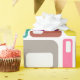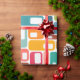 This wrapping paper has a mid-century modern design of rectangles with a white hole in retro colors.