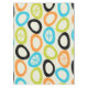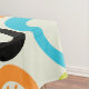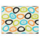 A pattern of colorful shapes that resemble rocks make up this 1950s atomic age-inspired abstract art design. Colors are chartreuse, orange, sky blue and black.