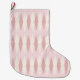 This Mid Century Modern Pink Argyle Christmas Stocking features a First Lady pink background and a pattern of mod, translucent, blush diamonds overlaying larger, vintage cream diamonds with gold colored, space age speckles. This minimalist inspired, deconstructed argyle is a simplistic throwback of the larger than life atomic era that dominated the decorating landscape of the 1950s and 1960s. This kitschy design is reminiscent of everything from retro Palm Springs’ bowling alley signs to classic TV shows to the television trays you used at your grandma’s house.