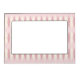 This Mid Century Modern Pink Argyle Magnetic Frame features a First Lady pink background and a pattern of mod, translucent, blush diamonds overlaying larger, vintage cream diamonds with gold colored, space age speckles. This minimalist inspired, deconstructed argyle is a simplistic throwback of the larger than life atomic era that dominated the decorating landscape of the 1950s and 1960s. This kitschy design is reminiscent of everything from retro Palm Springs’ bowling alley signs to classic TV shows to the television trays you used at your grandma’s house.