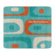 Mid Century Modern Piquet Minimalist Abstract Pattern in Turquoise Teal, Orange, and Beige Cream. Fun but sophisticated midcentury mod retro modernist design; a nod toward the 50s and 60s, in fun colors. Can be personalized with family name or other text. Makes a great housewarming or wedding gift. By Kierkegaard Design Studio.