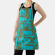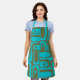 Mid Century Modern Piquet Turquoise Olive Pattern Apron
