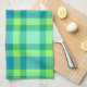 A classic, Mid-Century Modern plaid design Hand towel in light and deep jade green with turquoise and lime green accents