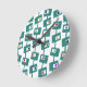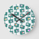This clock has a mid-century modern design of rectangles strung together with squares inside them.