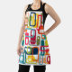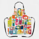 This apron has a mid-century modern design of colorful rectangles overlapping each other. Fun and bright.
