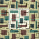 A unique atomic era styled 1950s pop art style pattern with lines and desaturated brown and green squares & rectangles on a yellow background.