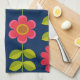 Mid Century Modern red flowers with leaves Kitchen Towel