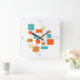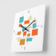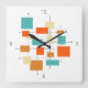 Mid Century Modern Retro Orange Turquoise Squares Square Wall Clock