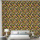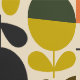 A retro Scandinavian floral pattern with mid-century geometric blooms in olive, mustard, blush, and charcoal; a versatile design that complements living rooms, kitchens, bedrooms, entryways, and nurseries.