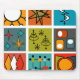 This mouse pad has a mid-century modern design of a smorgasbord of mid-century modern graphics in retro colors.