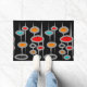 Mid-Century modern spaceage doormat in colors of the time period on a black background.