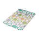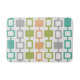 A simple minimalist pattern inspired by 1950s atomic era abstract art, with columns of rounded squares in orange, chartreuse green, turquoise, and gray.