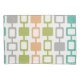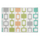 A simple minimalist pattern inspired by 1950s atomic era abstract art, with columns of rounded squares in orange, chartreuse green, turquoise, and gray.