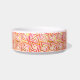 This is a heavy, durable bowl decorated with Tibbies of many colors, the perfect size for hungry/thirsty Tibs. The design is interesting and printing clear.