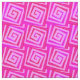 Modern abstract design of squared spirals in shades of pale to deep pink with magenta and coral accents