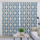 Mid Century Modern Atomic Age Starburst Pattern in Blue Cream & Black.