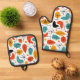 Mid Century Modern Starburst Pattern Oven Mitt & Pot Holder Set