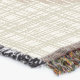 A quality printed throw has its advantages. This is a much finer weave throw than its loopier cousins, and though lighter, it is worth the investment for custom room accessorizing. The back is much prettier than the typical brown, and the fringe on the long sides very vivid, the selvage nicely done. Before photographing, I washed the throw in cold water, delicate, with a thicker woven throw the same size. On tumble dry low, this throw was dry in half the time as the other. This is a very practical quality if you use throws for furniture covers or to wrap up in frequently. The sleekness of the fabric makes it a great layer for accenting or protecting without the feeling of sitting on too much stuff. Perfect for napping or when you feel a light chill coming on. The color printing is beautiful and on this fabric, matched the design and color of my Photoshop image. This is an advantage for blending room fabrics and colors. The fringe on the short sides prints the colors from the design image and therefore varies from the side fringe. I streaked a white fractal line through the plaid pattern to give the illusion of weaving. This printed as crisp as an illusory thread, and put some white in the short side fringe, showing another advantage of print vs loomed- for artistic purposes, line lines, detail, and color integrity can be planned and preserved. My loomed throws have color limitations and more of a needlepoint texture. Print throws reproduce an exact image. The throw felt a little stiff straight out of the package, but this went away in the first delicate wash. Of course I searched the wash water for ink or bleeding and there was none.