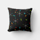 Mid-Century modern starbursts pillow in colors of the time period on a black background. Perfect poster for your mid-century modern home decor.d