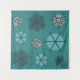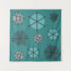 An atomic space age design with 1950s abstract art style planets and sputnik starbursts.