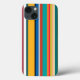 This phone case has a design of vertical stripes in Mid-Century Modern colors.
