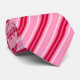 Tie in a Mid-Century Modern striped pattern in shades of medium pink, fuchsia pink, and burgundy / wine red, accented with pastel pink