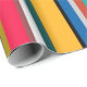 This wrapping paper has a design of vertical stripes in Mid-Century Modern colors.