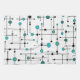 A Mid-century modern style geometric graphic in shades of aqua and blue.