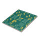Mid-Century Modern Teal Botanical Geometric Leaf Ceramic Tile