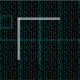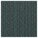 This fabric has a mid-century modern design of lines with half-rectangles in turquoise on a field of black.
