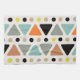A 1950's style art pattern with triangles and dots in many colors such as orange, gold, yellow, sky blue, slate gray and black.