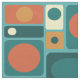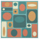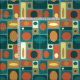 This retro inspired abstract pattern has a turquoise background and various sizes of rectangles in yellow and orange.
