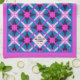A symmetrical pattern showcases bold, vibrant colors including magenta, pink, blue, and aubergine, all balanced by crisp white accents. The abstract geometric shapes and the overall aesthetic capture the essence of mid-century modern design, offering a stylish and retro-chic look. This design is perfect for adding a pop of color and a touch of nostalgia to any space and a perfect gift for newlyweds, or as a housewarming gift for the couple who love vibrant colors. There are more matching towels in my shop so you can mix and match a few to give as a set.