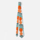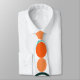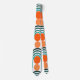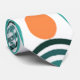 This tie has a mid-century modern design of teal waves and orange circles.