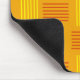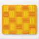 This mouse pad has a mid-century modern design that looks like a weave with red and yellow lines on a field of gold.