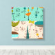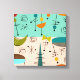 Mid-Century Modern Wrapped Canvas, colorful funky abstract squares and moon shapes in shades of orange, gold, brown and teal. A perfect addition to your mid century style.