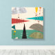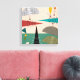 Mid-Century Modern Wrapped Canvas, colorful funky abstract squares and moon shapes in shades of orange, gold, brown and teal. A perfect addition to your mid century style.