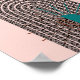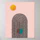 A minimalist modern abstract poster with a mid century modern geometric design in teal, brown and gold on a pink background. The perfect wall art for a minimal contemporary home.