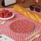 Mid-Century Retro Christmas Starbursts Pattern Red Paper Plates