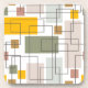 Protect your surfaces with a touch of 60s flair. This high-quality hard plastic coaster features a stunning mid-century modern geometric pattern in mustard, olive, and dusty rose. Its durable, glossy finish makes the sharp lines pop, turning a simple drink accessory into a piece of tabletop art. Perfect for coffee tables, home bars, or as a stylish housewarming gift.