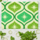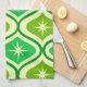 Mid Century Retro Starbursts On Green Ogee Pattern Kitchen Towel