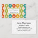 This is custom bussiness card featuring elegant mid century modern atomic starbursts pattern placed on ogee ovals in red, green, mustard and teal.