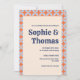 Plain white envelopes are included with paper invitations and will come to fit the invitation size you select. If you don’t need the envelopes, you may choose to not receive them by selecting the dropdown below "Envelopes" and choosing "None." If you’d like to have a design on your envelopes, you can browse all of these available envelopes to find the design that complements your Mid Century Mod Retro Wedding Apricot Blue Invitation.