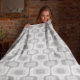 Mid-Century Rounded Rectangle Gray and White Fleece Blanket