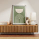 A minimal abstract art with a mid century geometric design in sage. A perfect home accessory for a minimalist.