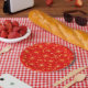 Mid Century Sputnik pattern, Deep Red Paper Plates